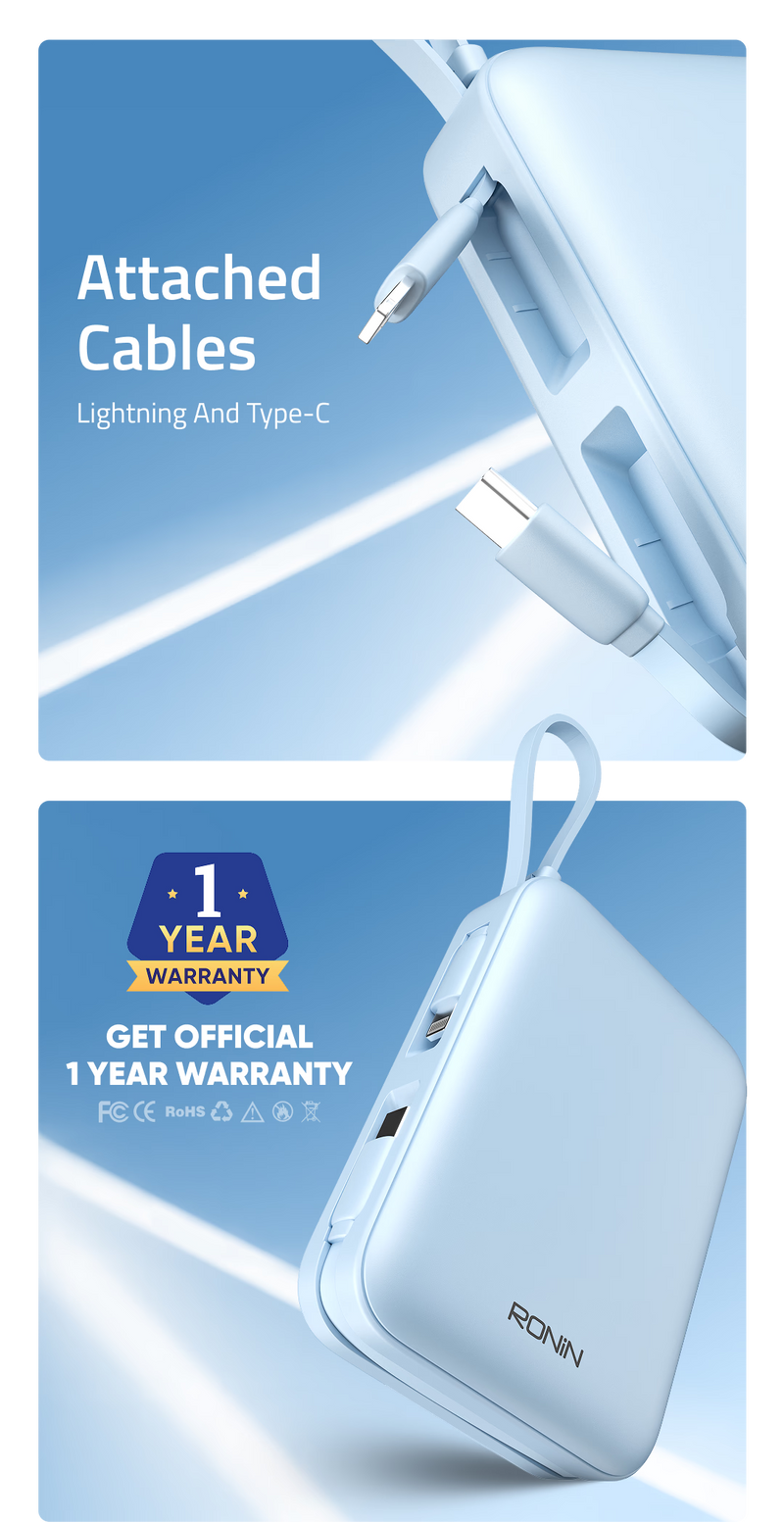 | Output Ports | Type-C Output 5V/3A (20W Max) Type-C Cable Output 5V/3A (20W Max) Lightning Cable Output 5V/3A (20W Max) USB Output 5V/3A (22.5W Max) |