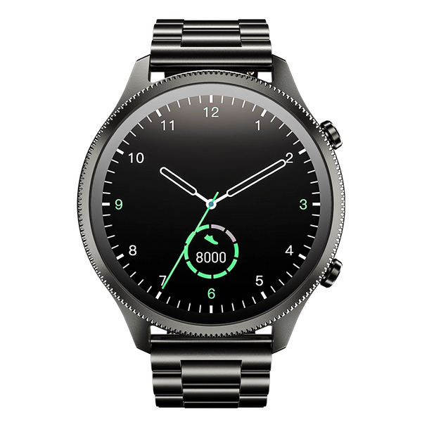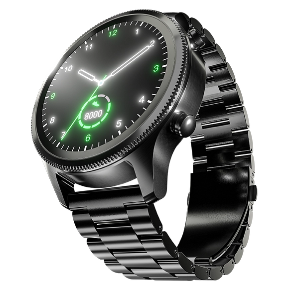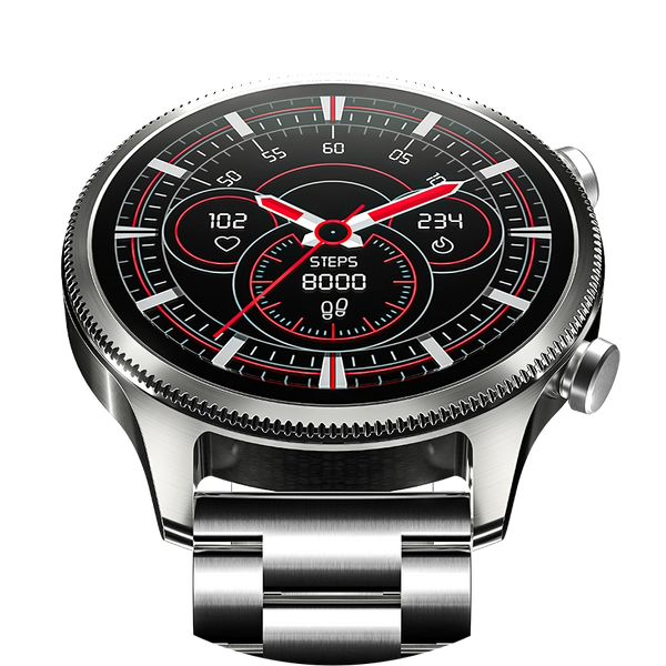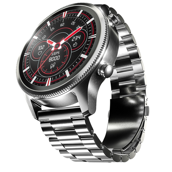 PHYSICAL SPECIFICATION Case Material: Metallic for a sleek, durable finish, Strap: 22mm soft silicone for a comfortable fit, water resistant Rating: IP68 – built to withstand dust and water exposure, Total Weight: 124g (with Chain strap)