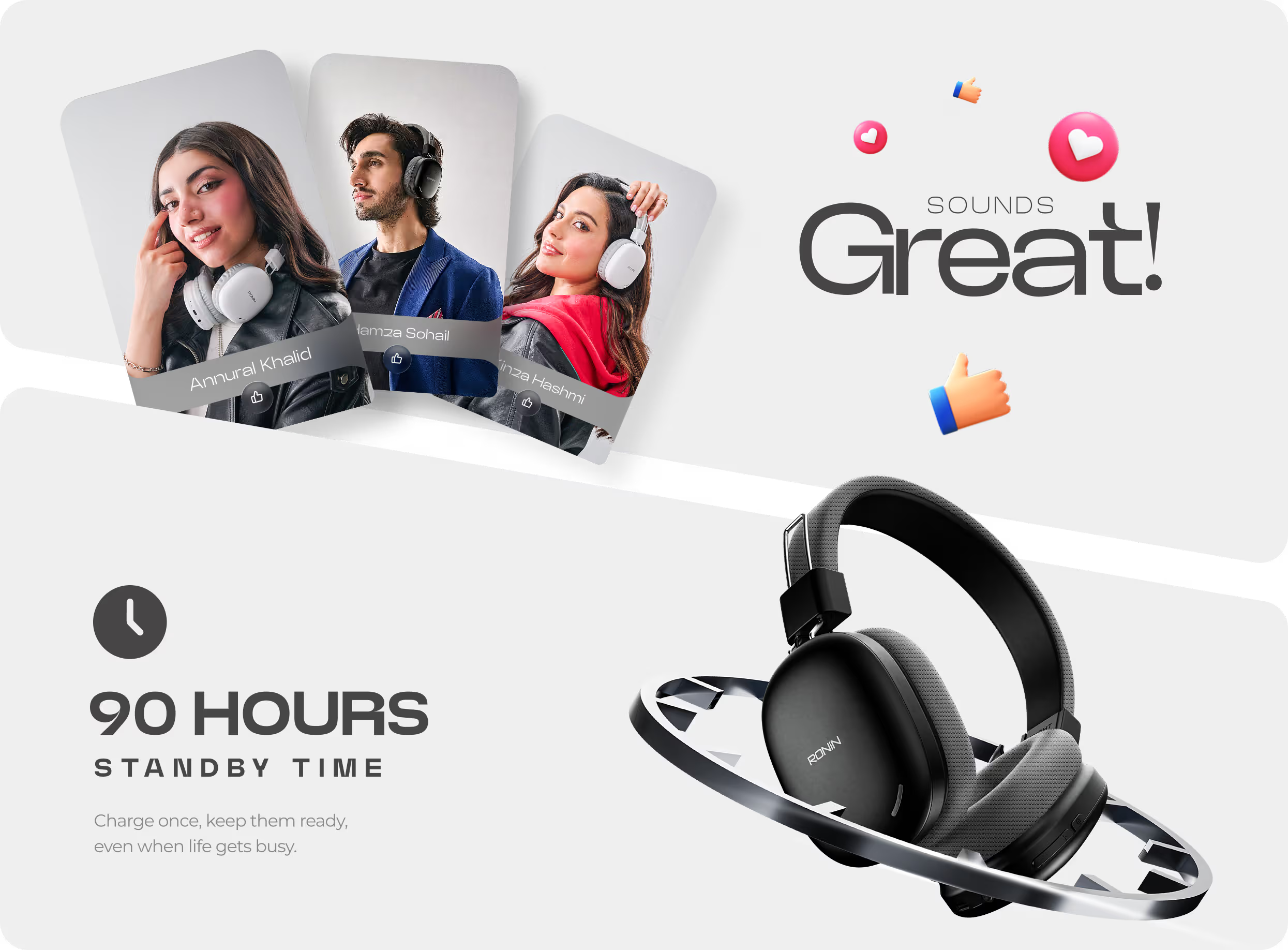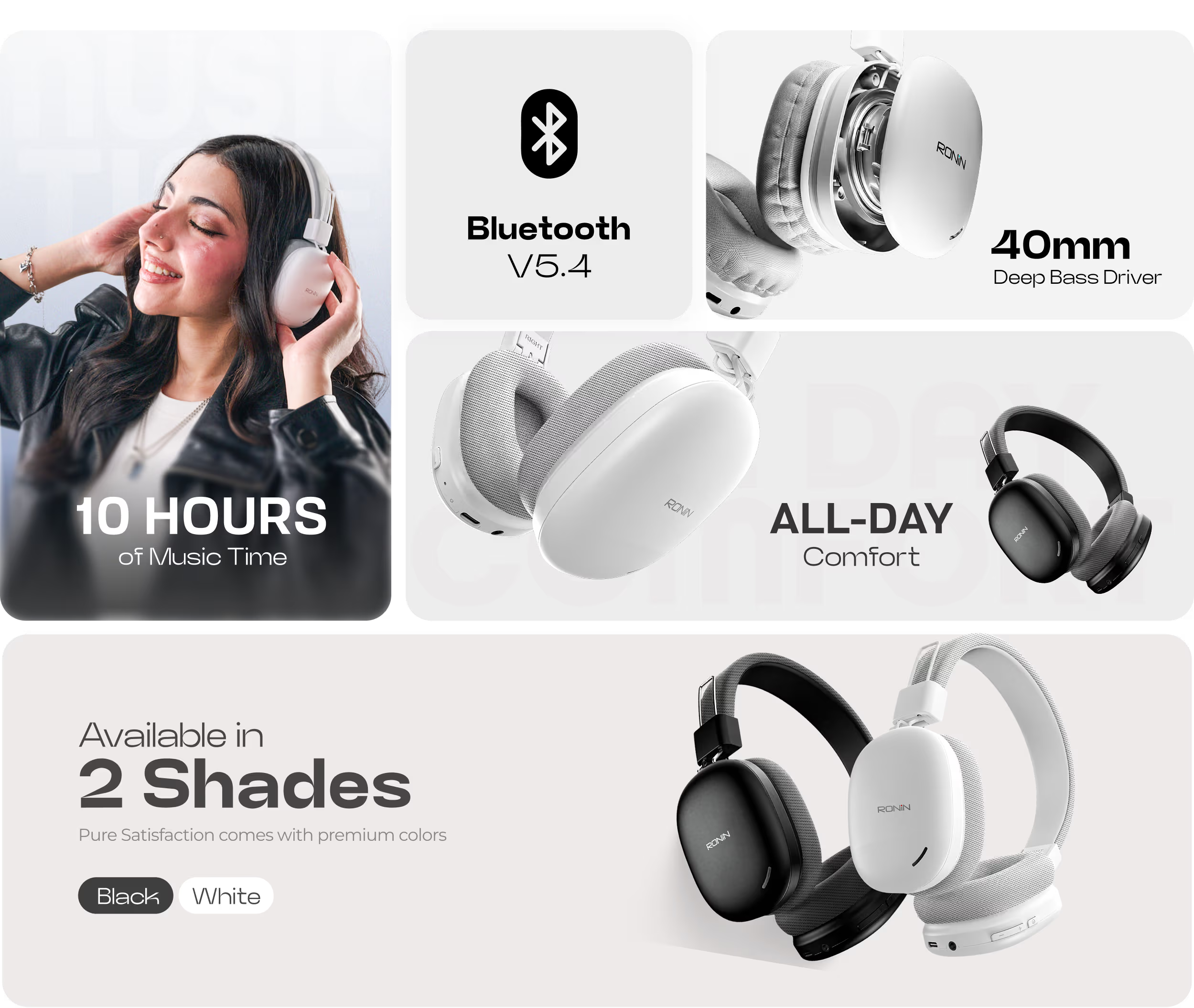 Momentum R-1510 is designed for listeners who want dependable performance with a clean, standout design for everyday use. Equipped with 40mm dynamic drivers, Momentum delivers smooth, detailed sound that feels balanced across music, calls, and media consumption. With Bluetooth 5.4, it provides stable wireless connectivity up to 10 meters and works seamlessly with both Android and iOS devices. Momentum supports Siri and Google Assistant for hands-free control and offers consistent call clarity, making it suitable for daily communication and work calls. Powered by a 500mAh battery, it delivers up to 10 hours of playtime and 90 hours of standby, with fast Type-C charging completing a full charge in around 3 hours. It also includes an AUX cable for wired listening when needed and is available in Black Grey and White Grey color options. Certified with UKAS Sound Certification, AMTIVO, and ISO 9001, Momentum is backed by a 1-year official brand warranty for long-term reliability.