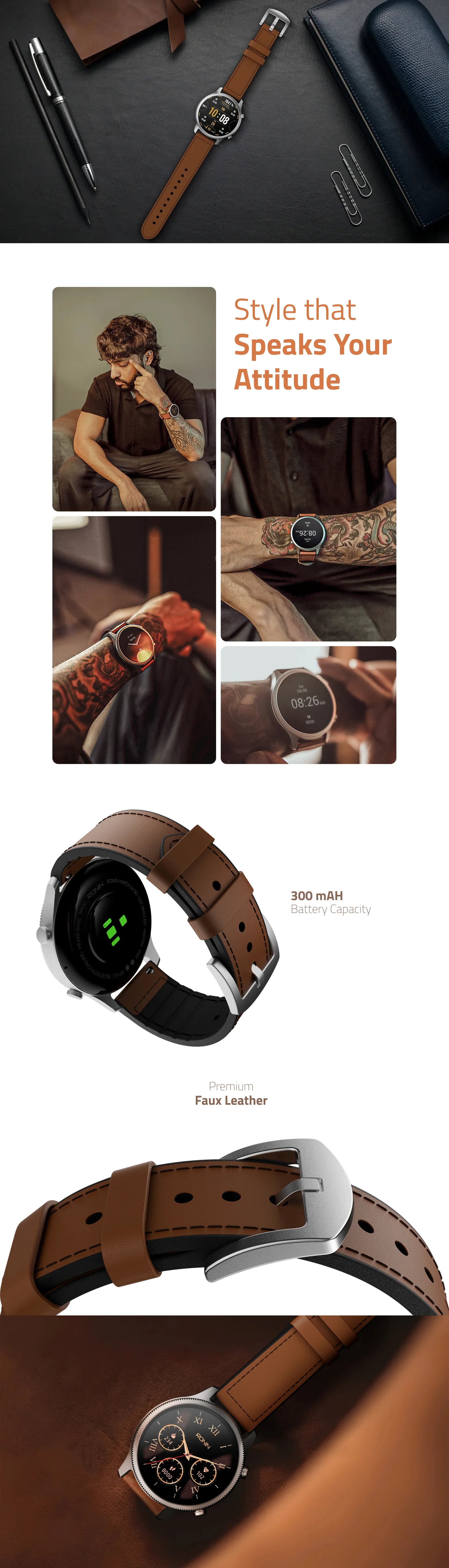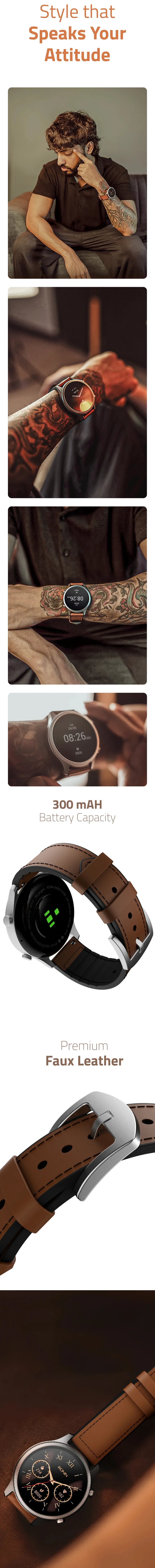 PHYSICAL SPECIFICATION | Case Material: Metallic for a sleek, durable finish, Strap: 22mm soft silicone for a comfortable fit, Waterproof Rating: IP68 – built to withstand dust and water exposure, Total Weight: 52g (with Leather strap) |