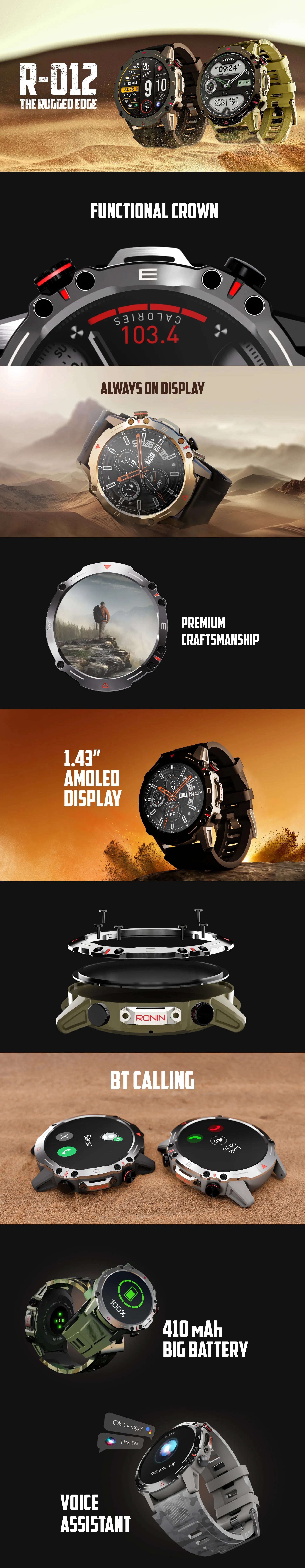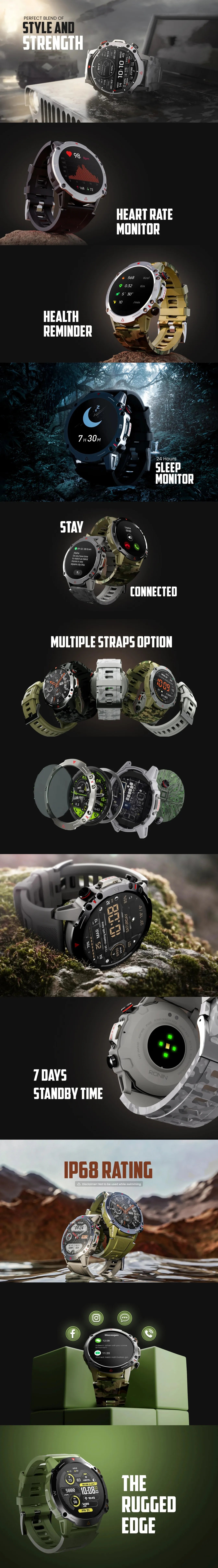 Introducing the R-012 Rugged Smart Watch, your ultimate companion for adventure and everyday life. Designed for durability, this smartwatch features a robust exterior that withstands the toughest conditions while maintaining a sleek, modern aesthetic. Equipped with advanced fitness tracking, heart rate monitoring, and GPS functionality, the R-012 keeps you connected and motivated. Its vibrant display ensures easy readability, even in bright sunlight. With customizable watch faces and a long-lasting battery, this watch seamlessly blends style and functionality, making it perfect for both outdoor enthusiasts and urban explorers.
