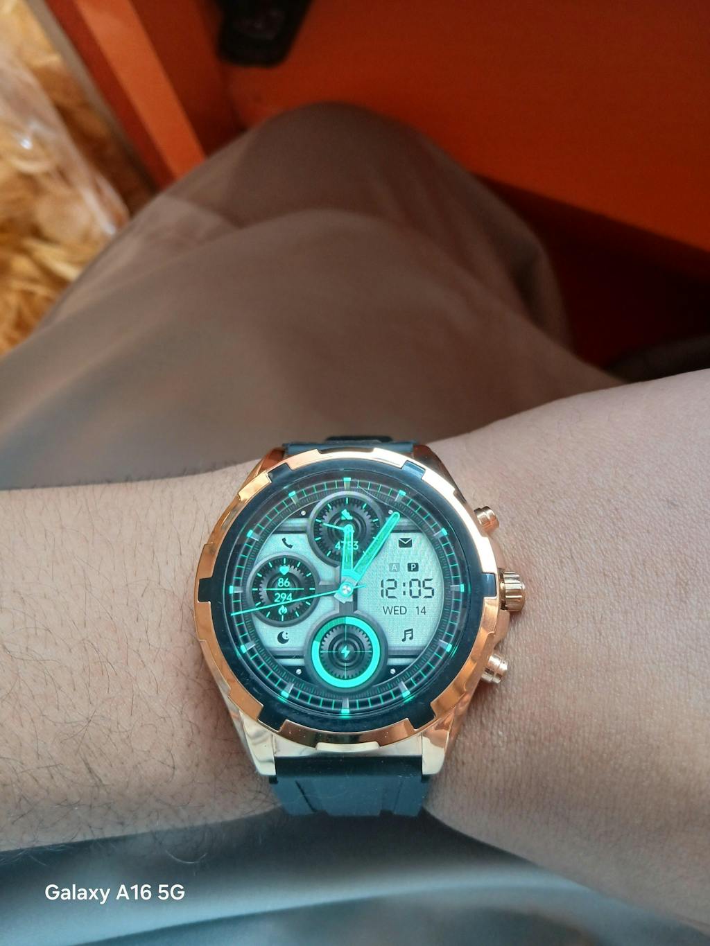 A:It features a 1.43-inch AMOLED + Always on display with 466 × 466 HD resolution, AI-enabled watch faces, and 550 nits brightness.