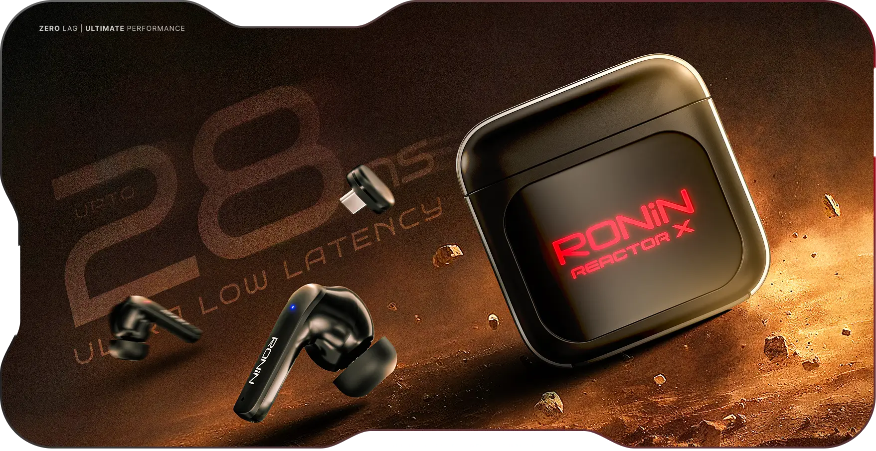 Meet the R-7090 Reactor X, built to dominate the digital battlefield. Every element of these gaming earbuds is engineered for performance, precision, and power. With ultra-low 28ms latency through its dedicated gaming dongle, Reactor X eliminates lag so your shots, footsteps, and commands hit exactly when you do. Powered by 13mm drivers, it delivers a cinematic 3D soundstage that helps you detect every enemy movement and explosion with lifelike accuracy. The 30dB Active Noise Cancellation keeps the outside world muted, while ENC mics ensure your teammates hear your voice with clarity even in chaotic lobbies. Designed with a bold futuristic look, Reactor X doesn’t just sound like a gaming weapon, it looks like one. The Bluetooth 5.4 connectivity ensures seamless transmission, while the IPX4 water resistance and 5-hour playtime keep you in action through intense sessions.