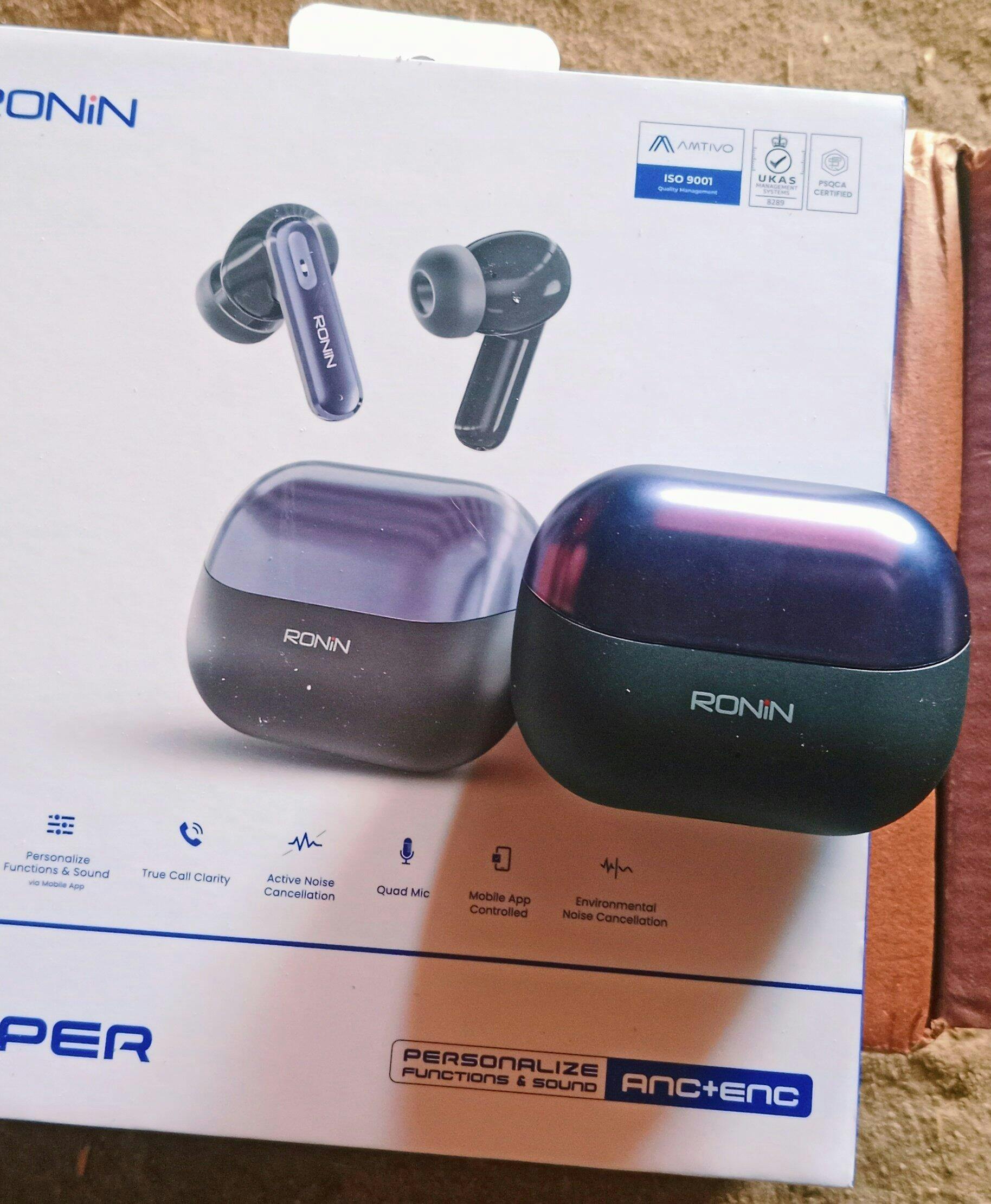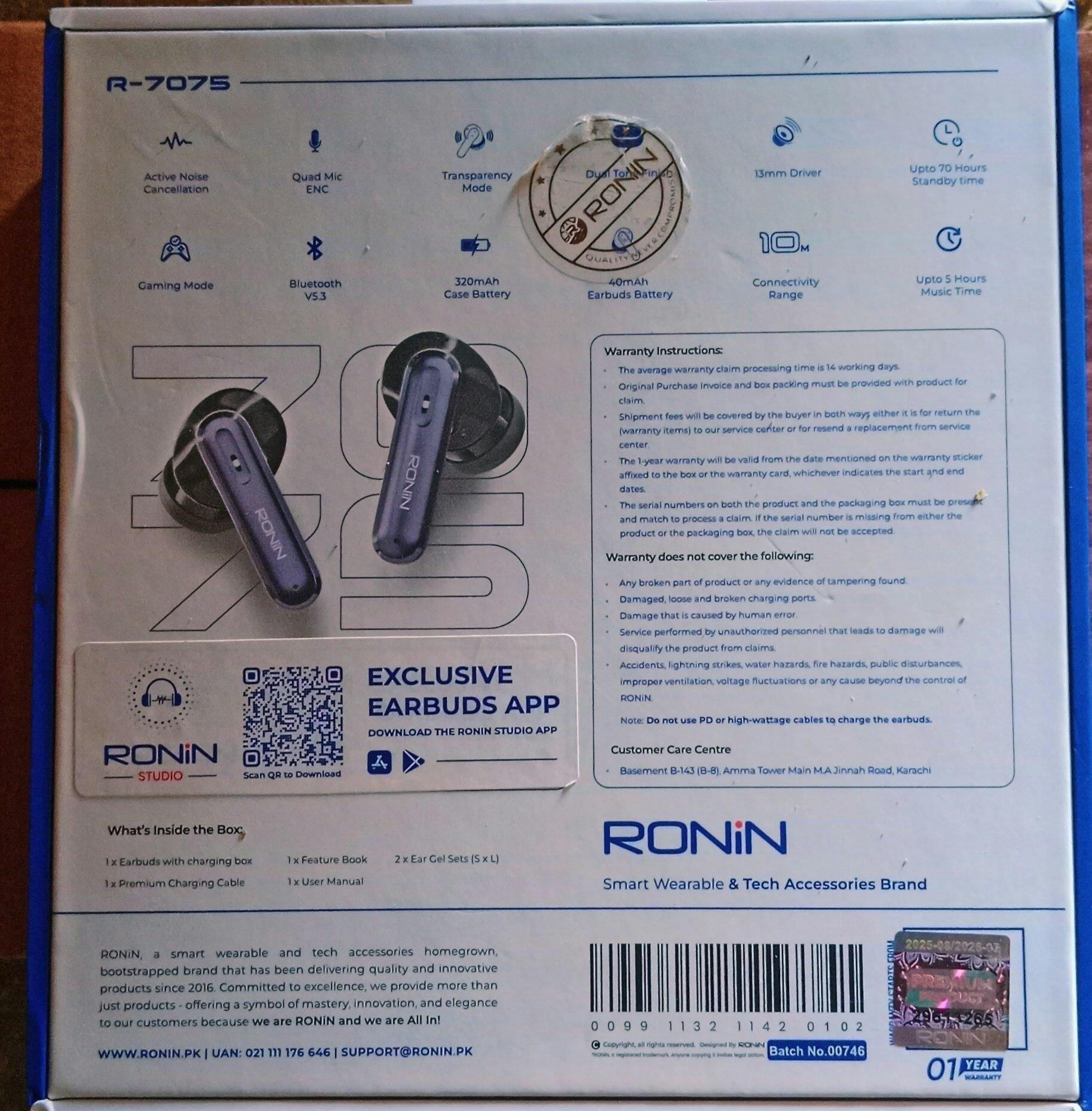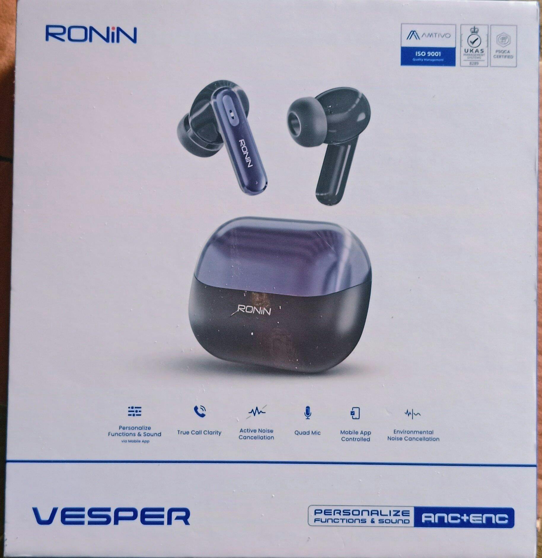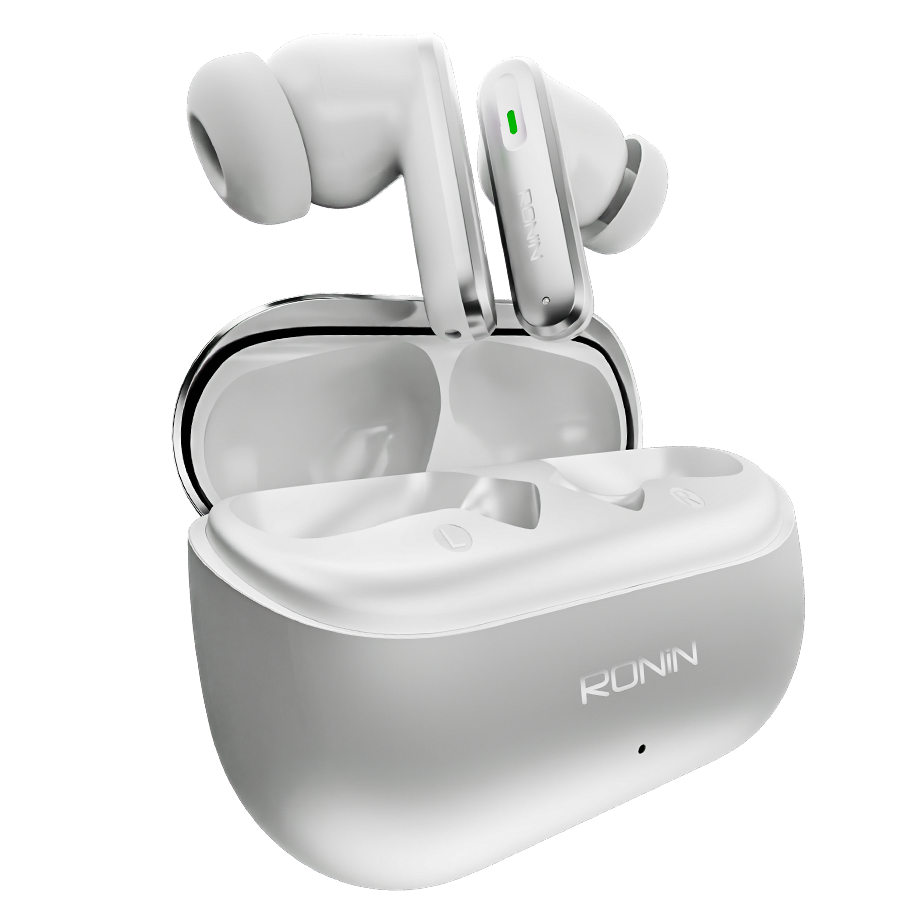 WhiteThe R-7075 Vesper is built for performance, designed for life in motion. With a powerful 320 mAh case and 40 mAh earbuds, enjoy 5 hours of uninterrupted music and 70 hours of standby time. Adaptive ANC and Qnx™ ENC work together to keep distractions out, while upgraded mics ensure every word lands clearly. Through the Ronin Studio app, personalize your EQ, tweak ANC levels, and take full control of your sound. Storm™ Gaming Mode keeps latency low (50 MS), while Aware Mode helps you stay connected to your surroundings. With Dual Connectivity, you can connect to two devices at once and shift between them effortlessly. Pocketable, comfortable and crafted in a dual-tone finish—Vesper brings smart audio to your everyday.